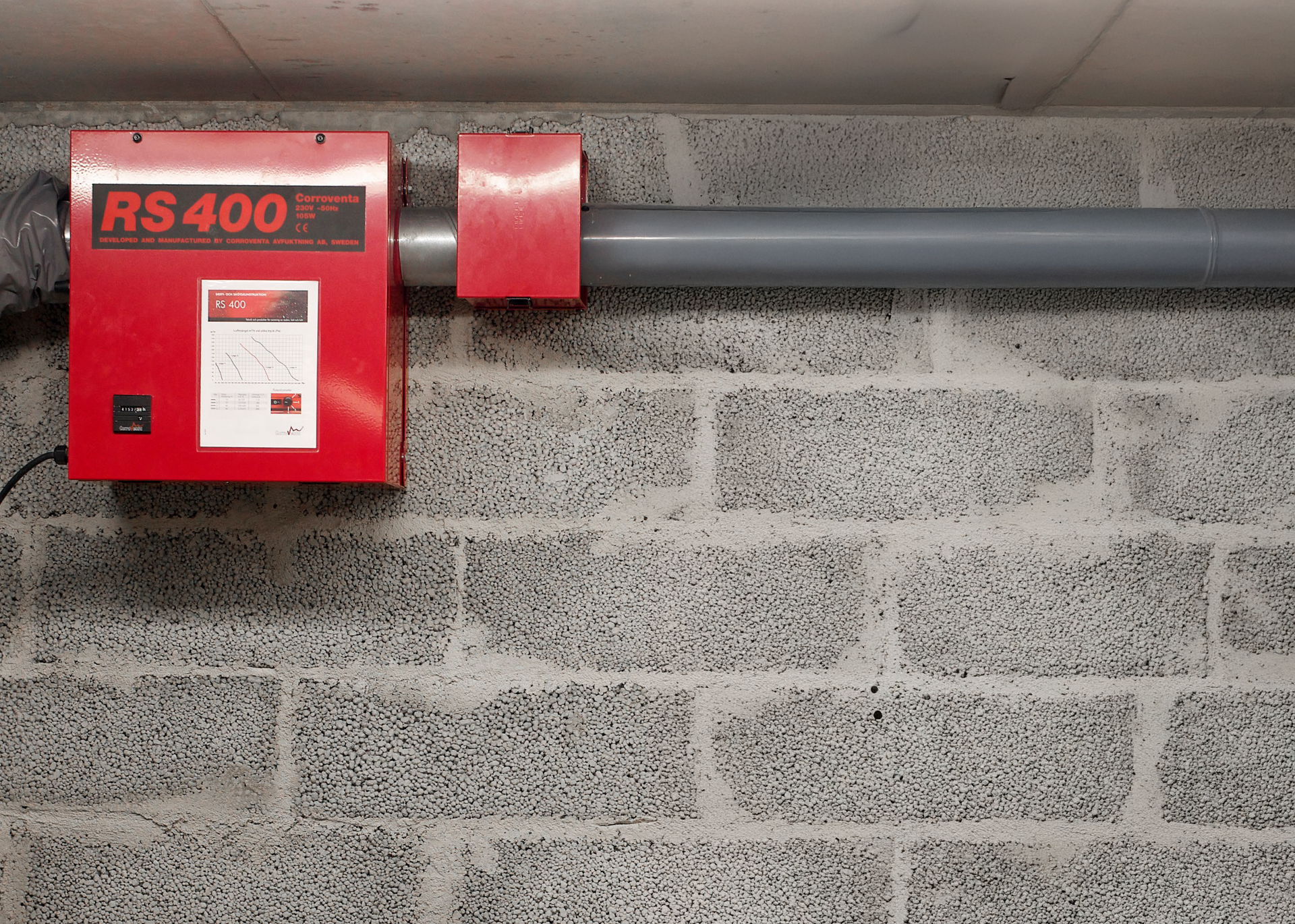 Agregat wysokociśnieniowy Corroventa RS 400: To urządzenie dedykowane do obiektów o dużej powierzchni lub budynków posadowionych na gruntach o niskiej przepuszczalności (glina, pyły). Dzięki zdolności generowania wysokiego ciśnienia statycznego, zapewnia skuteczną ekstrakcję Radonu nawet w najbardziej wymagających warunkach geotechnicznych.